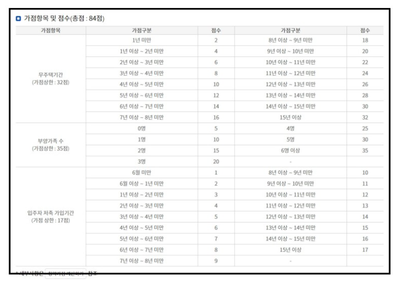 청약가점 계산하기 청약가점제에 의해 청약신청을 할 때에는 청약자 본인이 직접 주택소유여부, 무주택기간 및 부양가족수를 산정해야 하므로 신청전에 청약신청 시 유의사항 및 가점제도 내