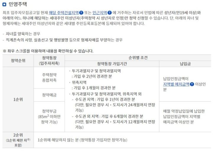 민영주택의 경우 다음과 같습니다.