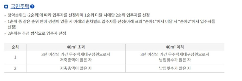 국민주택은 청약통장 횟수 그리고 총 납입금액이 얼마냐 인가에 따라서 당첨자가 정해집니다.